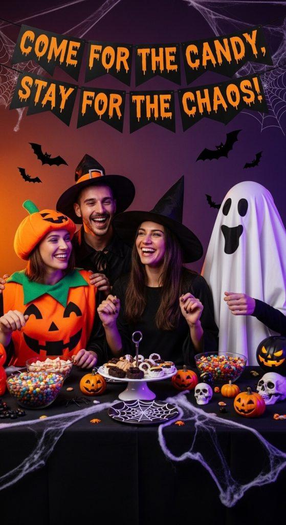 - For funny invites: “Come for the candy, stay for the chaos.”